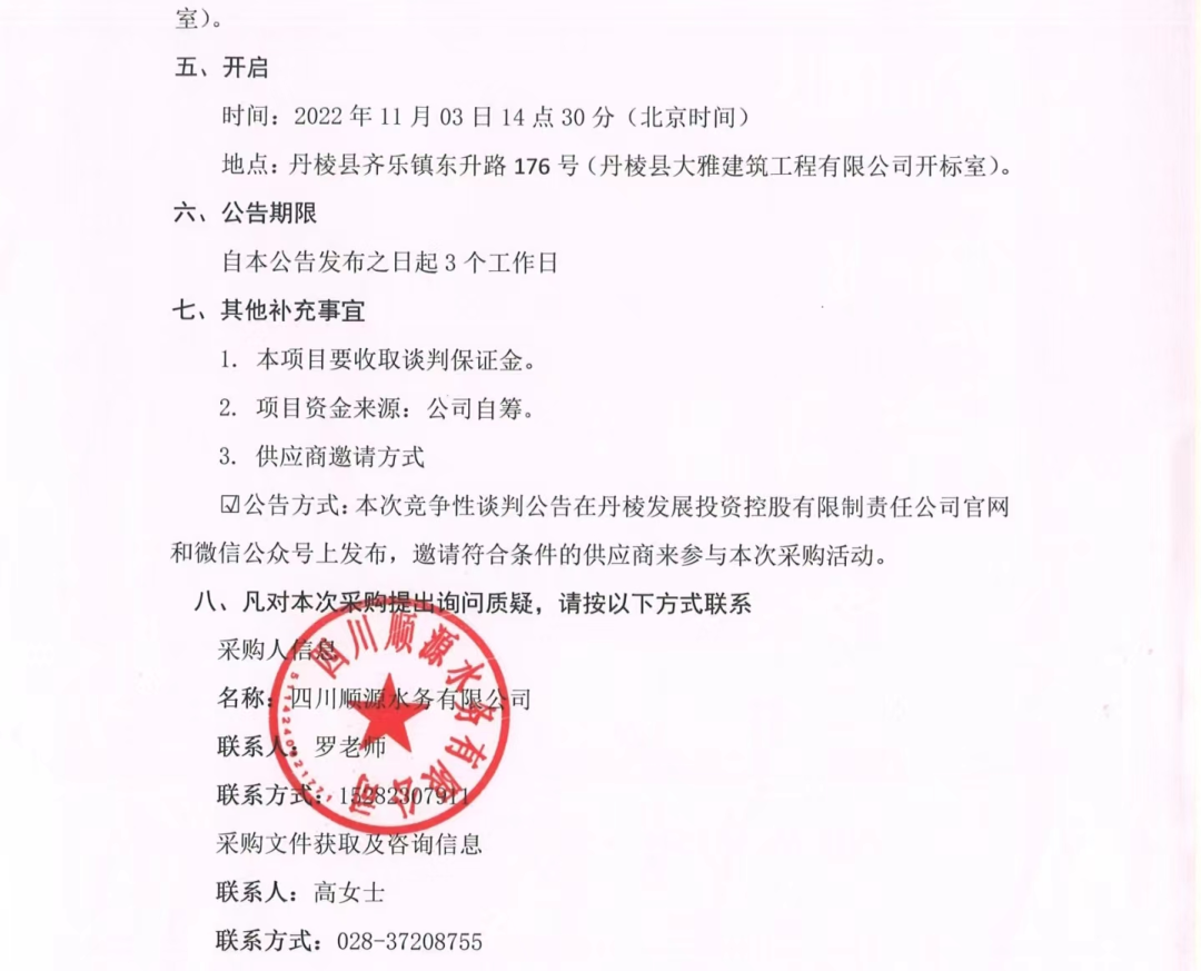 丹棱縣農(nóng)村自來水管道、供水設(shè)備日常搶修維護(hù)和零星安裝勞務(wù)用工項目談判邀請公告