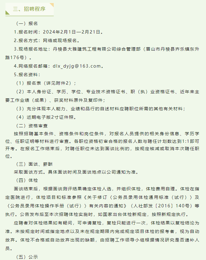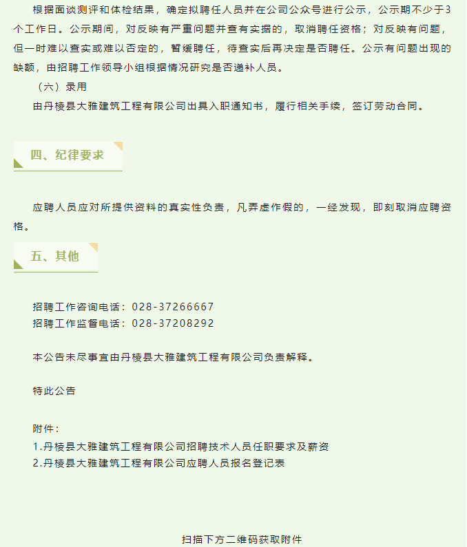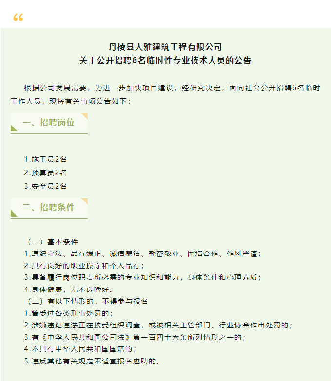 丹棱縣大雅建筑工程有限公司關(guān)于公開招聘6名臨時性專業(yè)技術(shù)人員的公告