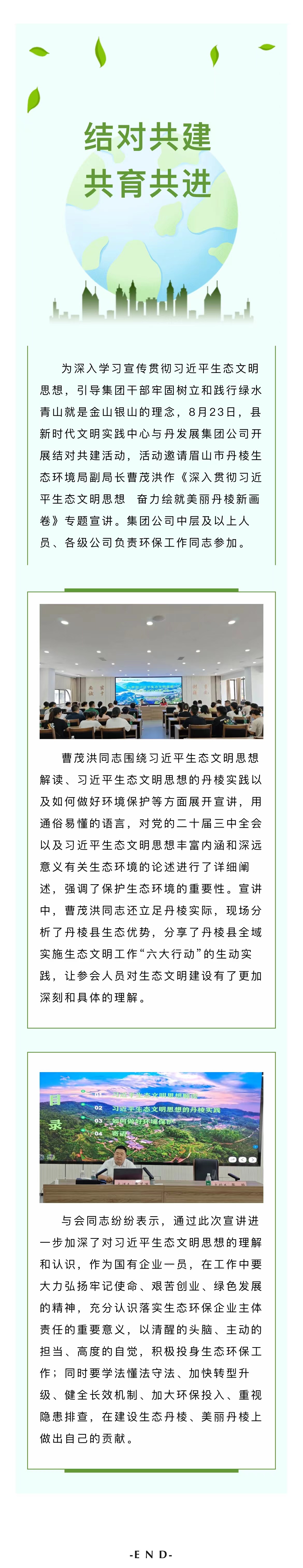 結(jié)對(duì)共建,共育共進(jìn)|縣新時(shí)代文明實(shí)踐中心與丹發(fā)展集團(tuán)公司舉辦習(xí)近平生態(tài)文明思想專(zhuān)題宣講活動(dòng)